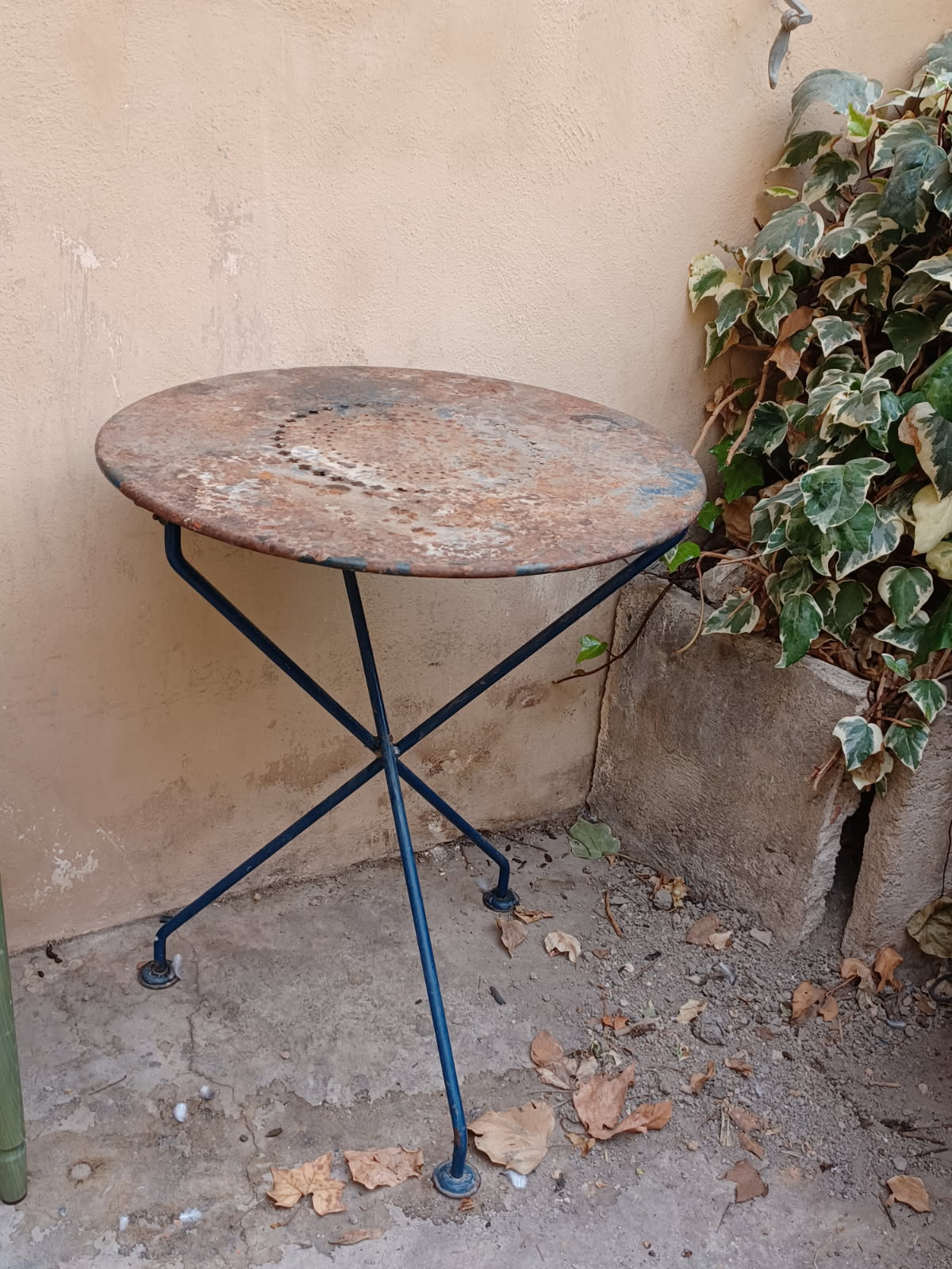 - Et voilà « effet rouillé garanti » Le petit guéridon de jardin ne demande qu’une rénovation pour revenir au printemps prochain gouter les premiers rayons du soleil !!! Ha! la rouille aimée et détestée à la fois, en décoration elle est très tendance.